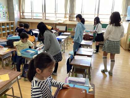 頼もしい6年生 公開日 2024/05/01 更新日 2024/05/01 特別活動 毎朝、6年生が教室や玄関で1年生を来るのを待っています。 「名札を付けるよ。」、「まず、お道具箱を持ってくるよ。」などと6年生が1年生に優しく教えている姿がありました。6年生のおかげで笑顔で1日を始めることができています。 いいね(0)