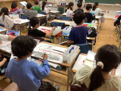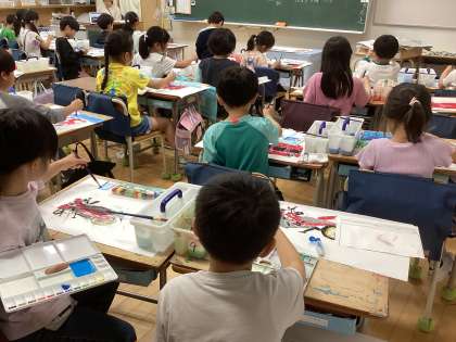 クレパスや絵の具を使って、画用紙いっぱいに、のびのびと描く姿が印象的でした。