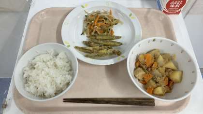 R6/5/8 給食 公開日 2024/05/08 更新日 2024/05/08 給食 令和6年5月8日(水) <献立> ・ごはん ・きびなごのカレー揚げ ・じゃがいものそぼろ煮 ・糸寒天と野菜の和え物 ・牛乳 いいね(0)