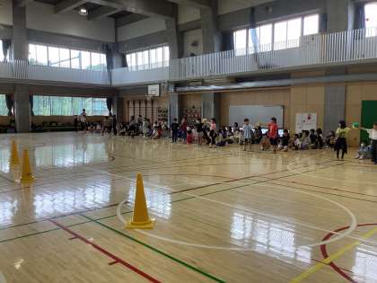 体育館でお弁当を食べたり、6時間目に学年レクを行ったり、