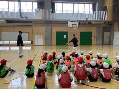 読売ジャイアンツのコーチをお招きし、ベースボール体験をしました。