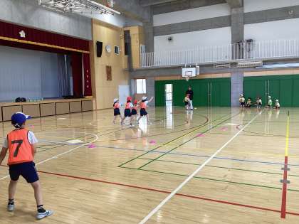 ボールを高く遠くに投げることを意識してキャッチボールをしたり、ボールをよく見てキャッチしたりと、コツをつかんでいる様子がみられました。今日の学びを体力テストでもいかせるといいです!