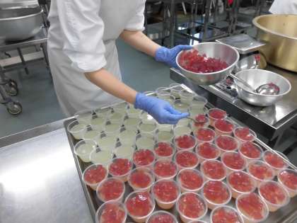 R6/6/14 給食 公開日 2024/06/14 更新日 2024/06/14 給食 令和6年6月14日(金) <献立> ・ツナとトマトのスパゲティ ・サウピカンサラダ ・あじさいゼリー ・牛乳 今日は、あじさいゼリーを作りました。 りんごジュースで作ったゼリーの上に、ぶどうジュースで作ったゼリーを角切りにしてのせました。 梅雨の時期に咲くあじさいをイメージしています。 季節を味わいながら食べてもらえるとうれしいです。 いいね(0)