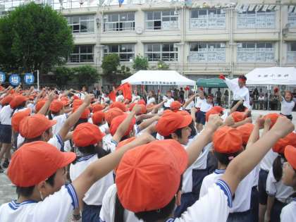 組体操では、高学年の児童の引き締まった表情と、緊張感に、低学年の児童も圧倒されました。どの技も成功させ、跳び上がって喜び合う姿が見られました。