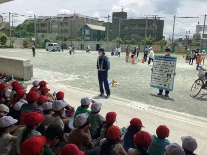 自転車安全教室を行いました。警察署の方からの講話と実技講習を通して交通ルールを学びました。1人で自転車に乗る機会が増えていく中で、大切なルールと心構えを改めて確認することができました。
