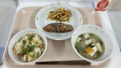 R6/7/3 給食 公開日 2024/07/03 更新日 2024/07/03 給食 令和6年7月3日(水) <献立> ・こぎつねご飯 ・鮭の南部焼き ・じゃがいものきんぴら ・冬瓜のスープ ・牛乳 いいね(0)