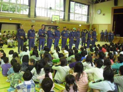 本日、全校児童と地域・保護者の方々が集まって地域防災訓練を行いました。