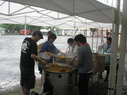 炊き出し訓練として地域の方々がカレーを作ってくださり、試食しました。子どもたちは月曜日にアルファ米のカレーを食べる予定です。