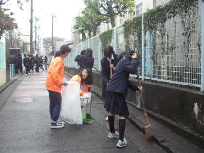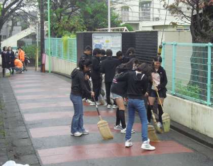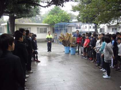 11月6日の朝、小中クリーン作戦として多聞小学校の周囲の掃除をしました。富士の学び舎の連携校である富士中学校の生徒と、本校の6年生と全教職員、地域・保護者の皆様が集まり、協力をして行いました。