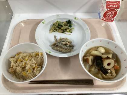 R7/1/23 給食 公開日 2025/01/24 更新日 2025/01/24 給食 令和7年1月23日(木) <献立> ・コーン茶飯 ・わかさぎのから揚げ ・おでん ・野菜のからし和え ・牛乳 いいね(0)