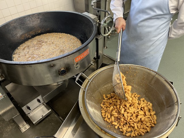 しょうゆやしょうがに漬け込んだ後、片栗粉をまぶして油でカラッと揚げました。