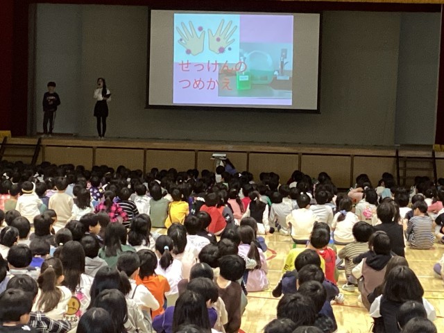 1時間目の前の時間に、全校児童が体育館に集まり、委員会紹介集会がありました。5,6年生が活動している各委員会の活動内容について、全校児童に知ってもらうものです。各委員会の委員長さんは、緊張しながらもしっかり自分たちの活動内容やお願い等について伝えることができました。司会も6年生の児童が行いました。集会や朝会で全校で集まることがありますが、子供たちは静かに並び、しっかりと話を聞くことができています。これからも続けていきたいですね。