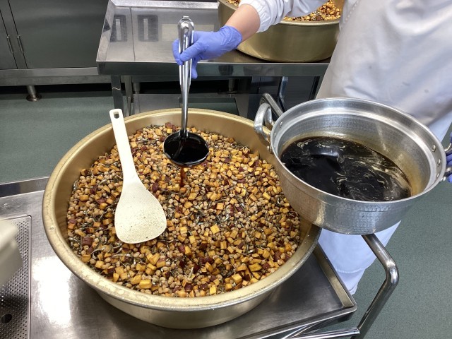 カラフルビーンズは、大豆、かたくちいわし、さつまいもを使って作りました。大豆は
