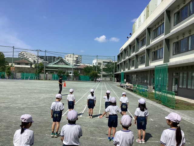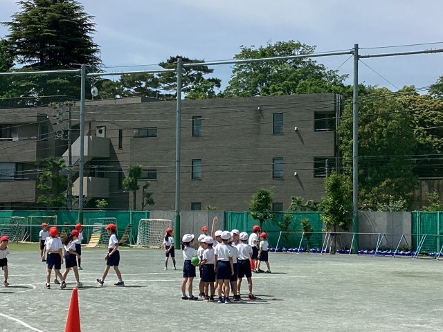 お天気がよかったので、子供たちは校庭で体を動かしていました。