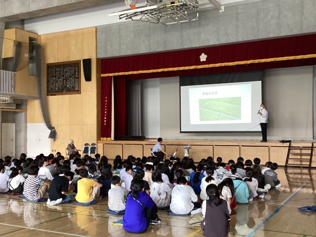 また、5年生はこれからお米づくりを始めます。最近何かと話題のお米。苗作りから始まり、どのように育てていくのか、ゲストティーチャーの方にお話を伺いました。「米」は字の通り八十八の手間をかけて育てると言われるほど、農家の方が手間をかけて育てたものです。社会科の学習との関連させて、また、食育の面からも自分たちでお米を育ててみるのは良い経験になると思います。来週には、5年生が育てる苗が届きます。秋の収穫に向けてしっかりと育てていってほしいものです。