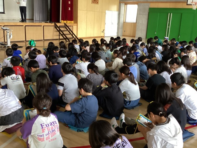 5年生は、来月に迫ってきた川場の宿泊について、どんなところに行くのか、どんな様子なのか話を聞きました。