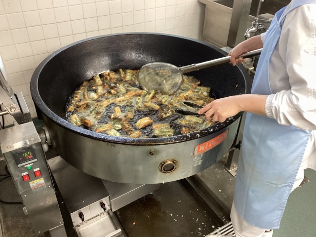 今日は、天ぷらの衣に米粉を使っています。米粉は米を粉にしたもので、粉状にして麺に加工
