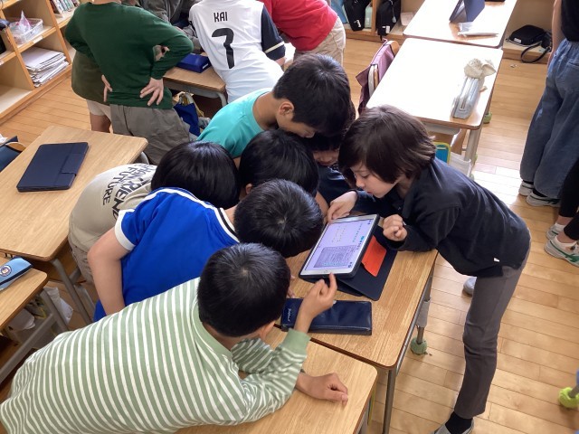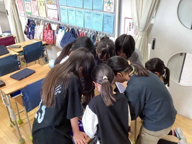 まずは、役割分担から。班長やレク係、保健係、食事係などみんなで生活していく上で必要な係をどう分担するのか話し合います。5年生が楽しみにしている移動教室。楽しく充実したものにするためには、事前の準備が大切です。誰がどの持ち場で頑張るのか決めるのも真剣です。タブレット端末を使いながら、また至近距離で頭を寄せ合いながら話し合います。みんなで協力してしっかり準備をしていきましょう。