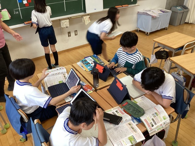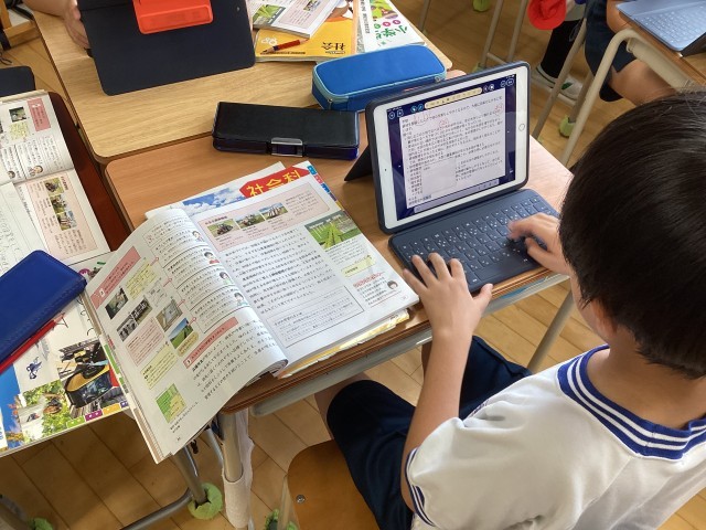 米作りについての学習を進めている5年生。以前の学習スタイルとはちょっと違う学び方をしています。