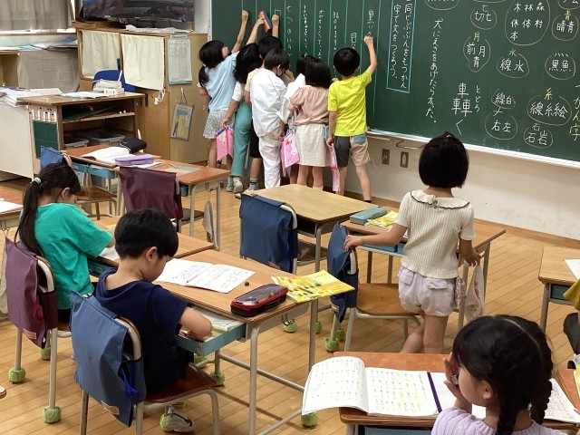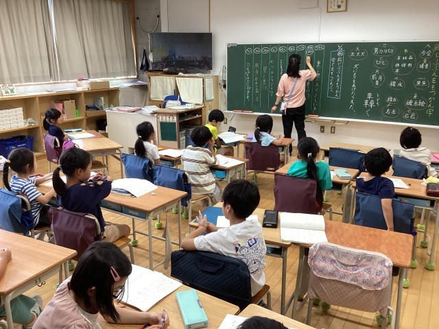 2年生は、同じ部分をもつ漢字にとても興味をもって取り組み、「大きな犬がたくさん食べて太った」など文作りにも一生懸命取り組んでいました。