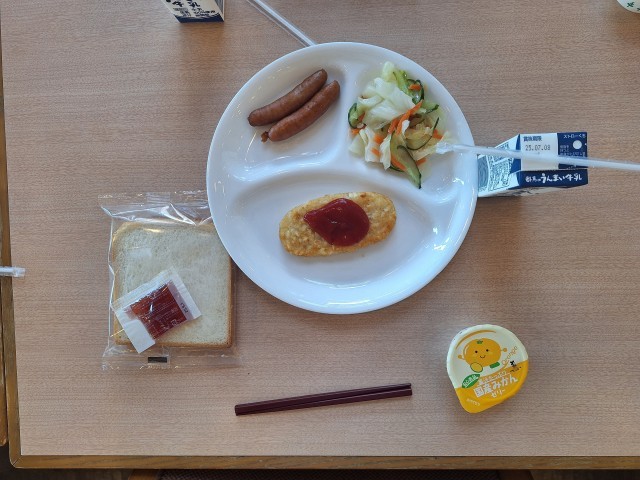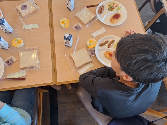 3日目の朝食です。今朝はパンが主食のメニューです。食べたあとは、部屋の片付け、荷物整理になります。