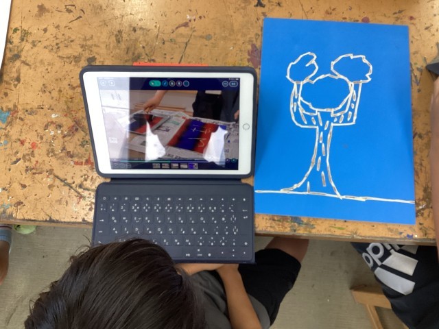 4年生の図工は、「伝説の木の物語」。彫刻刀を使って彫る「木版画」です。