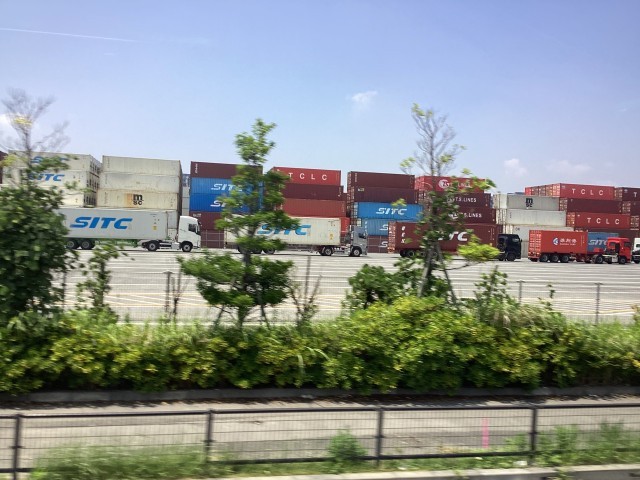 そして、この辺りは、東京港でもあるので、コンテナが幾重にも積み重ねられ、コンテナトレーラーがひっきりなしに走っているのも、この辺りとは違う光景でした。