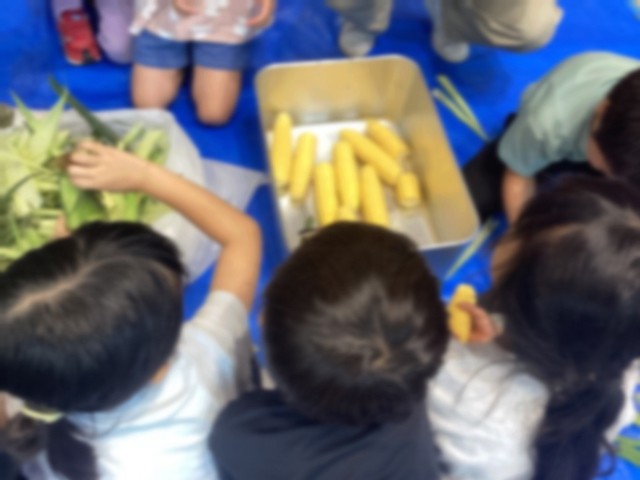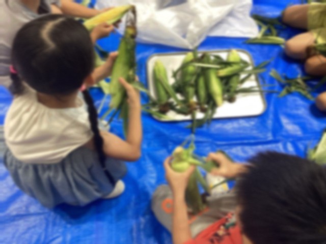 【1年生 とうもろこしの皮むき】