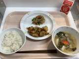 令和7年2月18日(火)<献立>・ご飯・ポテトコロッケ・わかめサラダ・みそ汁・牛...