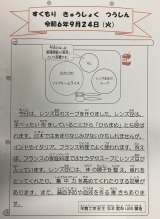 令和6年9月24日(火) <献立> ・鶏肉のソイクリームライス ・レンズ豆のス...