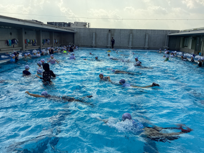 水難事故を想定し、着衣のまま水の中で動く大変さを体験したり、自分の命は自分で守る...