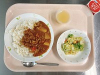 (献立)大蔵大根のカレーライスひじきのサラダみかん牛乳今日はせたがやそだちメニューでした。大蔵大根は世田谷区で育てられている伝統野菜で、普通の大根の2、3倍ほどの大きさがあります。葉の部分はサラダに使...
