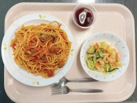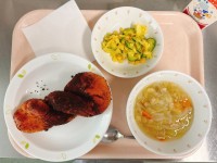 (献立)つけしょうゆラーメンごま酢和えマーラーカオ牛乳マーラーカオは中国語でマーはマレーシア、カオはケーキという意味があり、中国に伝わった蒸し菓子が元になっています。ふんわりと蒸し上げた、優しい甘さの...