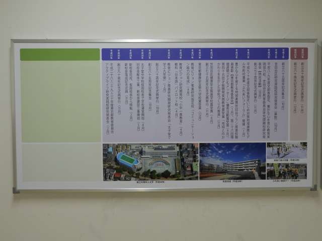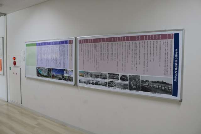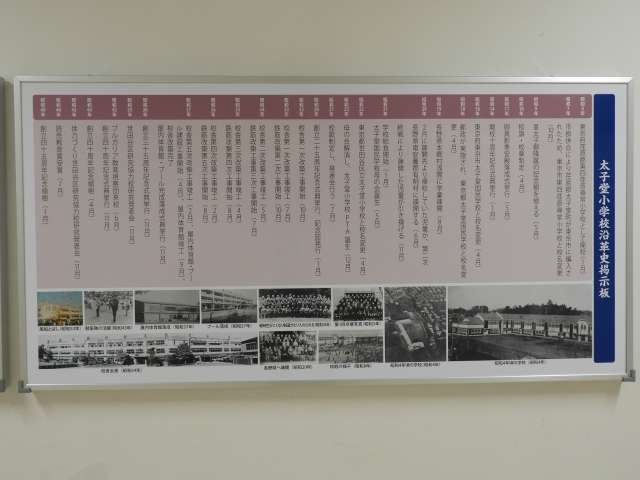 太子堂小学校沿革史掲示板、緑色の空欄にはこれからの10年の学校史が刻まれます。