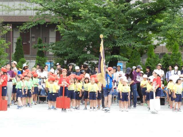 2018年5月26日、創立90周年記念大運動会を行いました。学年ごとに色が違うカラーTシャツを揃え、全校児童と先生たちが並ぶと7色の虹色になるという演出でした。いつもとは違う雰囲気に児童は高揚して、競技や応援に熱心に取り組む姿が素晴らしく、記憶に残る大運動会となりました。