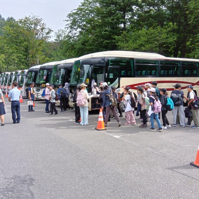 湯ノ湖畔で写真を撮り、ハイキングに出発です、ハイキングのコースは少し変更になります。