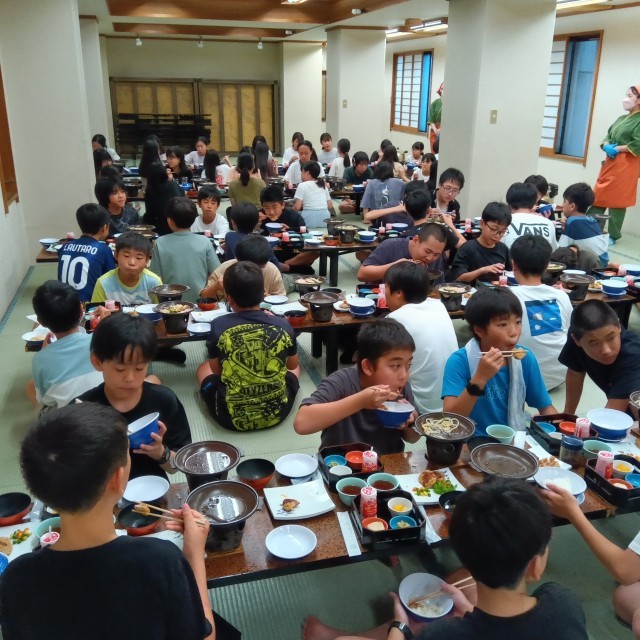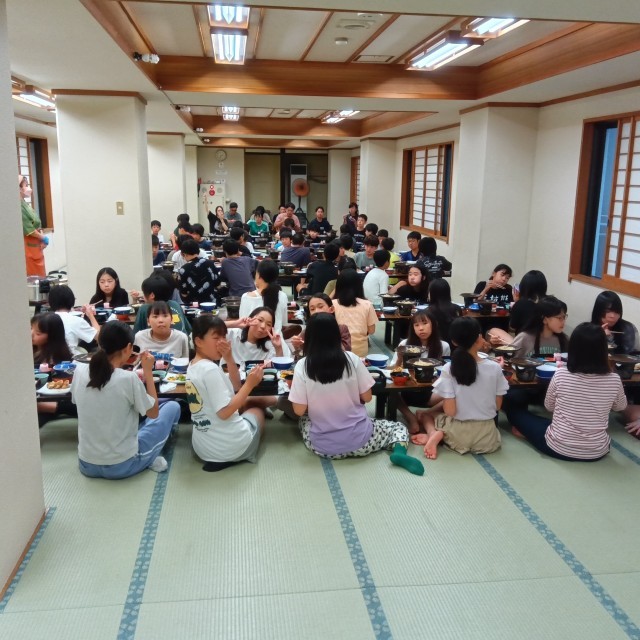 日光林間学園最後の夕食です。楽しく、おいしく、食べています。