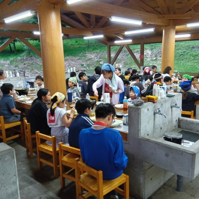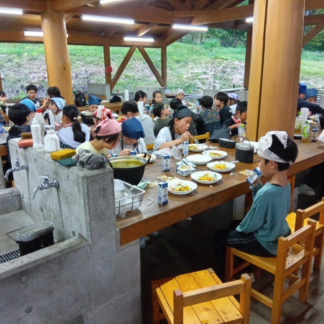 どのグループも美味しくカレーライスを食べています。