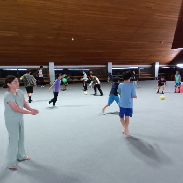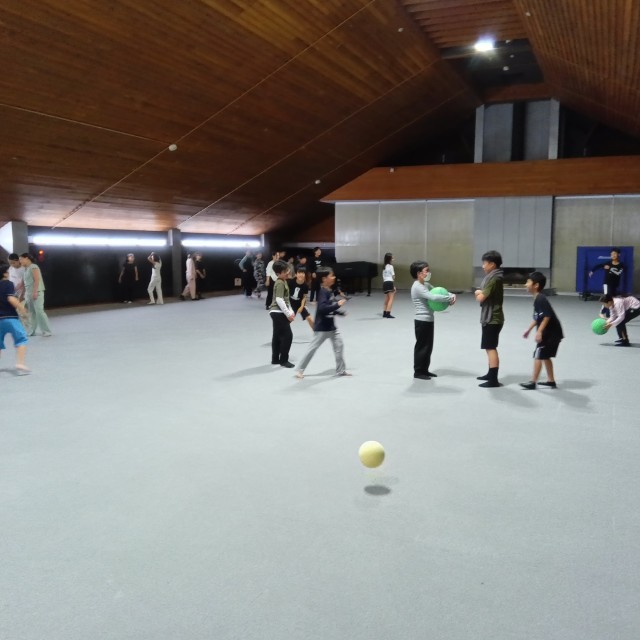 残念ながら、雷と雨のため、今日のキャンプファイヤーは中止になりました。その代わりに、ふじやまビレッジ内の村の会堂で、レクリエーションです。