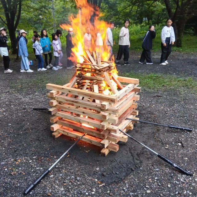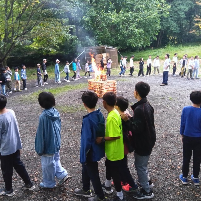 時間は早いですが、昨日できなかったキャンプファイヤーを行っています。