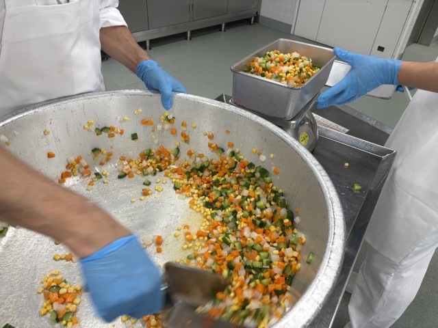 コロコロサラダは、にんじん、きゅうり、大根をサイコロ状に切り、ホールコーンと一緒に手作りのドレッシングで和えました。