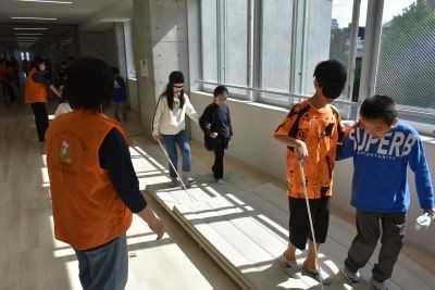 10月28日(火)2.3.4時間目に4年生が白杖体験をしました。目の不自由な方がどのように白杖を使って歩行したり、段差を登ったり、ベンチに座ったりするのかをグループで役割をローテーションしながら体験しました。介助する側は指示を具体的にする必要があることも学びました。朝早くから社会福祉協議会の方々にはご準備いただきありがとうございます。この体験を日ごろの生活の中に生かしていきましょう!