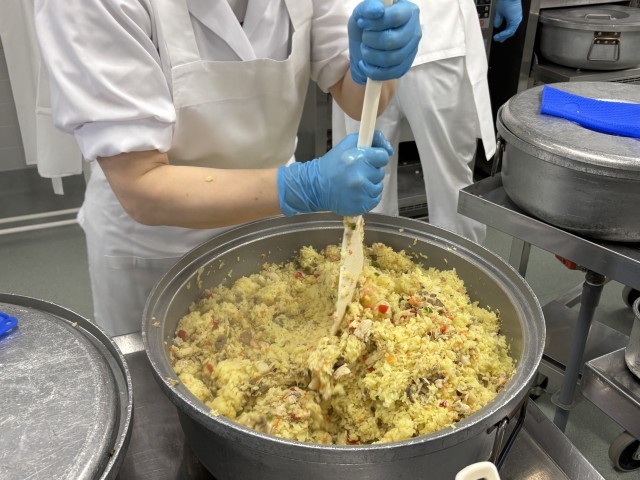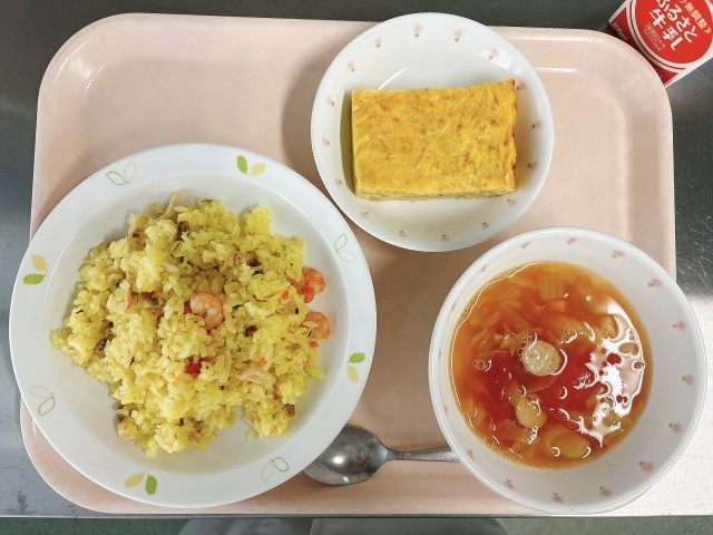 イカ、エビ、アサリなどの魚介の旨味がごはんに染み込んだ、見た目も鮮やかなパエリアを作りました。