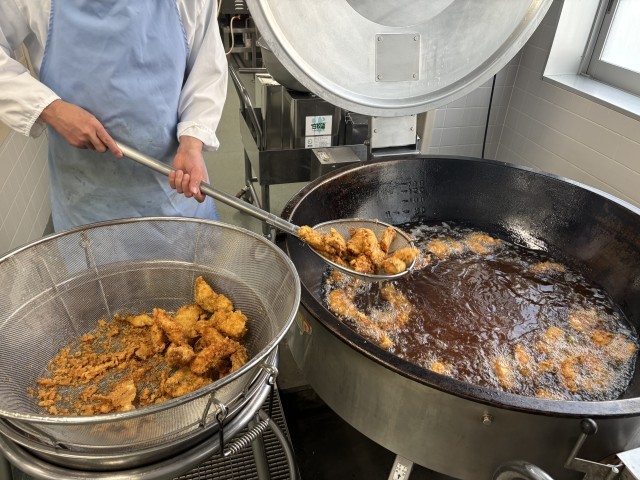 セルフィッシュサンドにはホキという白身魚を使いました。ホキは淡白な味わいでクセが少なく、揚げ物にもよく合うのが特徴です。子供達は柏型のパンに自分で挟み、楽しみながら食べていました。