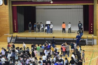 1月23日(金)今日は体育館で集会委員による「もうじゅうがり集会」です。お正月にちなんだ「うま」「はつもうで」「おせちりょうり」などのお題で異学年で楽しく交流することができました。朝からとても寒い日でしたが、心も体も暖かくなりました!