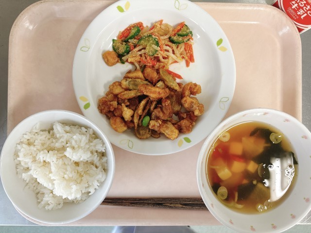 山口県の郷土料理であるチキンチキンごぼうを作りました。この料理は山口県の学校給食で生まれたと言われています。カリカリに揚げたごぼうと鶏肉を、さとうやしょうゆで作ったタレに絡めて作りました。