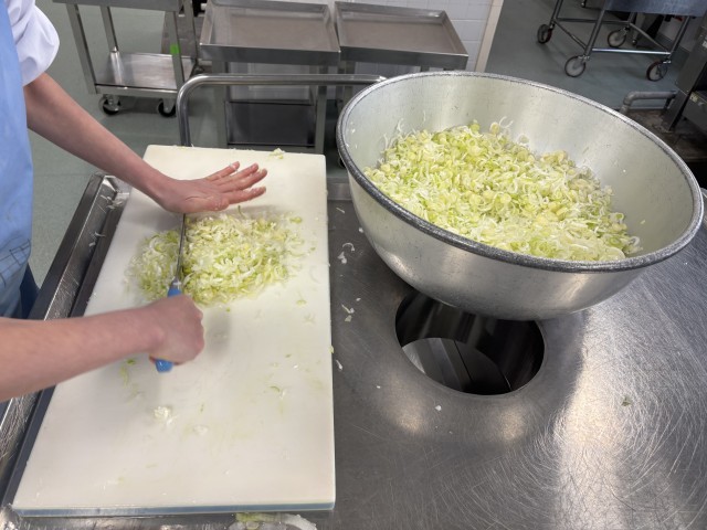 2枚目の写真はネギを細かく刻んでいる様子です。