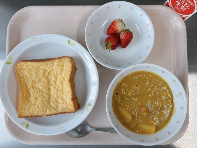 フレンチトーストは、卵、牛乳、さとうを合わせた液に食パンを浸して焼き上げました。