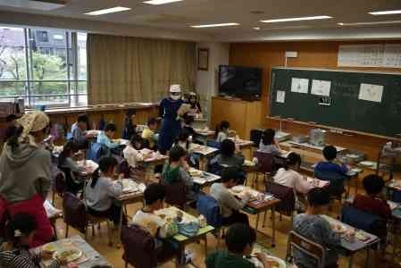 みんな行儀よく、しっかり食べています。学校支援コーディネーターの方にもお手伝いいただいています。ありがとうございます。これから毎日楽しく給食をいただきましょう!元気モリモリ笑顔がいっぱい!