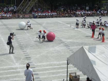 1年ポンポン玉入れ、5年100m走、2年団体「ころがせ!大玉」